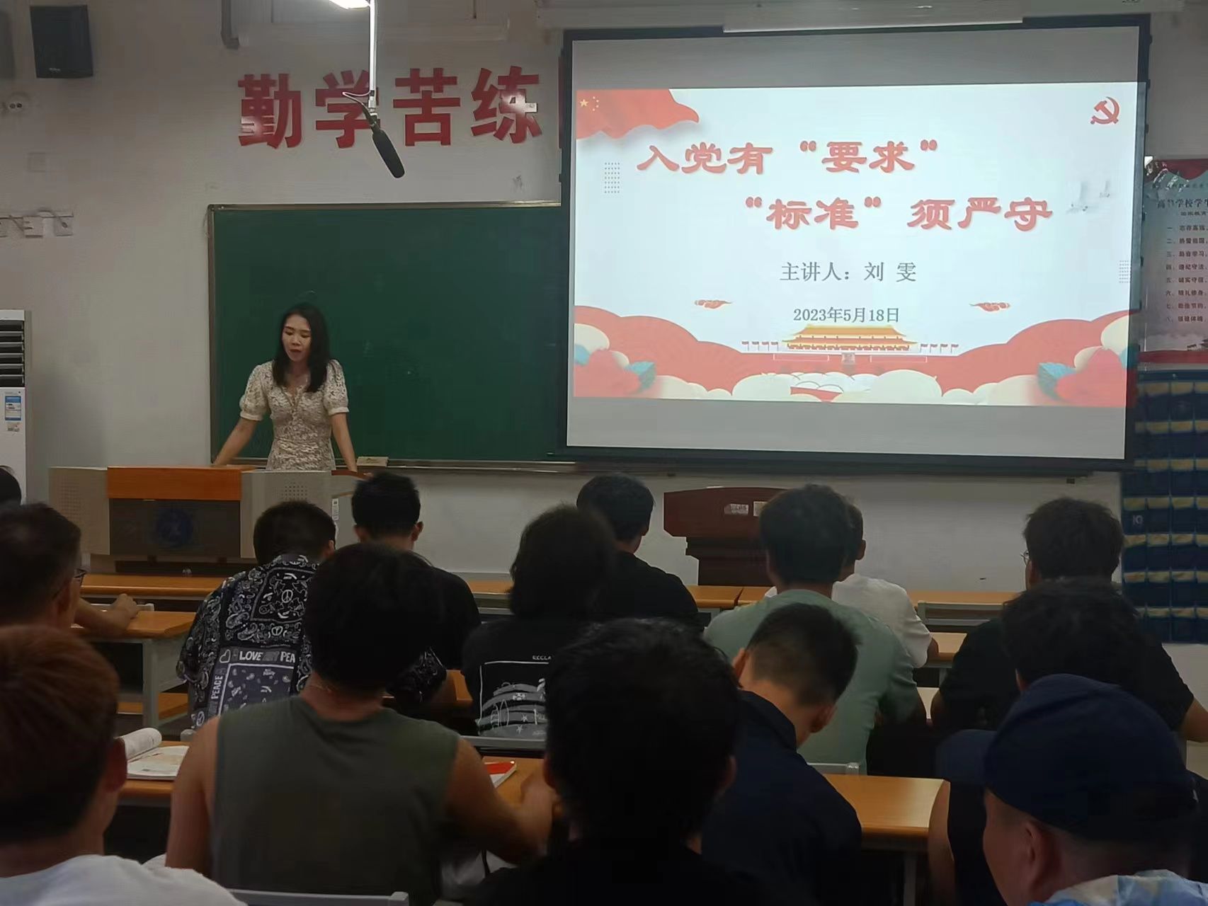 5月8日至5月22日,公司党总支在教学楼220教室举办第二十三期党课培训班。马克思主义学院王江峰、蔺建英、魏瑞华、杨颖华和公司党总支书记刘太君、经理李锁牢、员工党支部书记刘雯作专题授课。2023年上半年24名入党积极分子及8名发展对象参加培训。