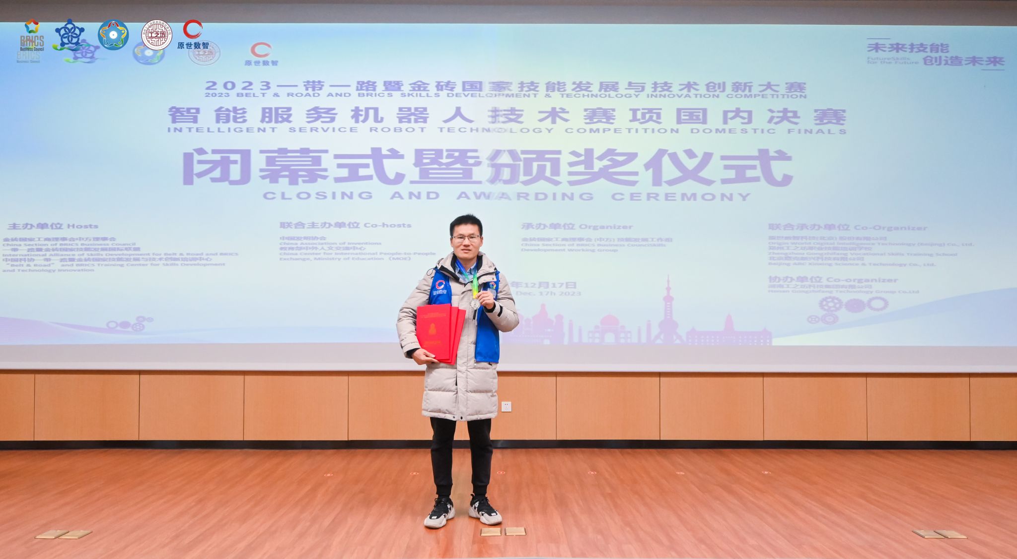 12月17日,2023一带一路暨金砖国家技能发展与技术创新大赛智能服务机器人技术项目国内决赛在河南郑州顺利闭幕,公司教师孙守勇在本次比赛中荣获职工组二等奖,指导老师李锁牢获得优秀指导教师荣誉称号、7790cnm必发集团获优秀组织奖荣誉称号。