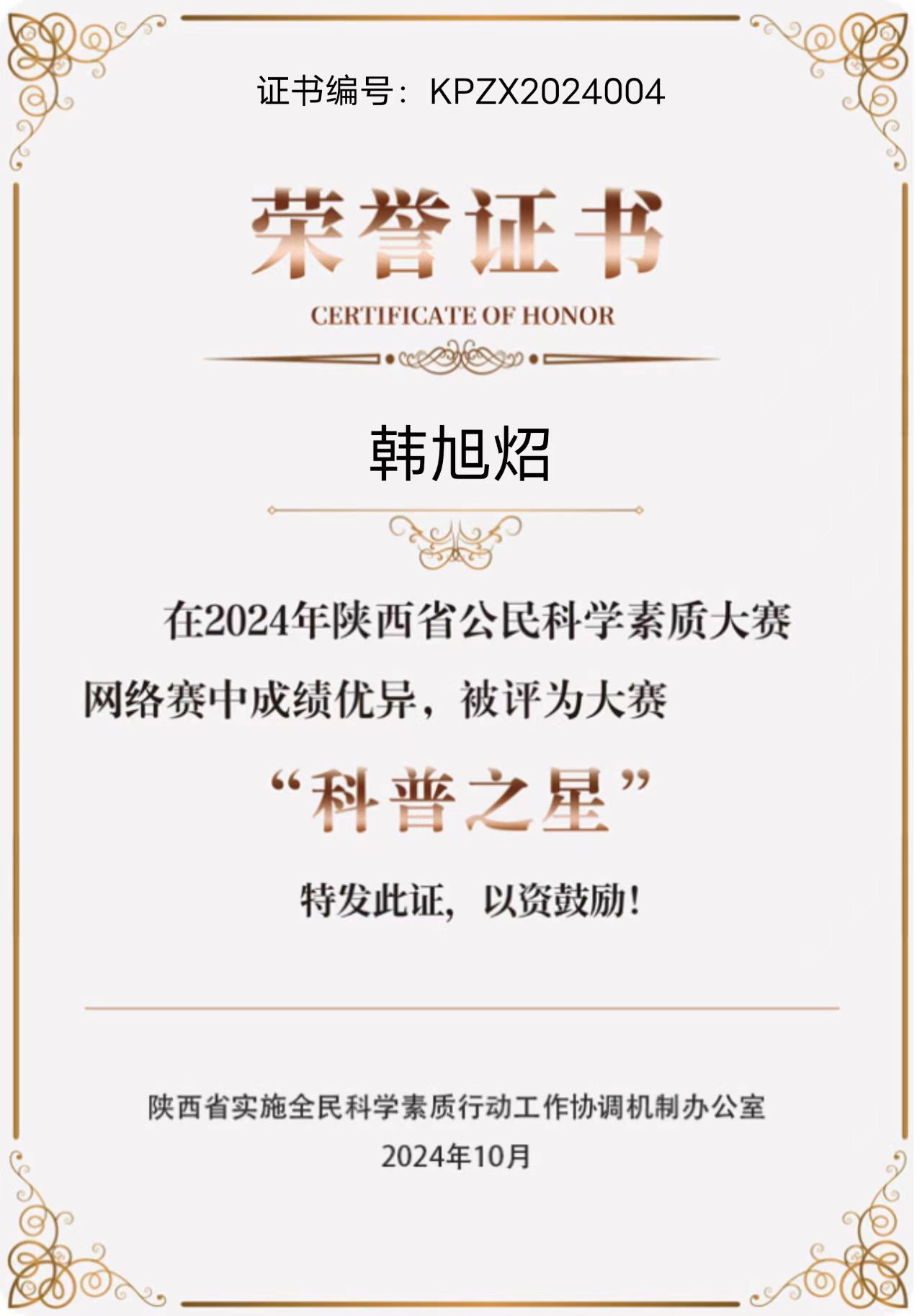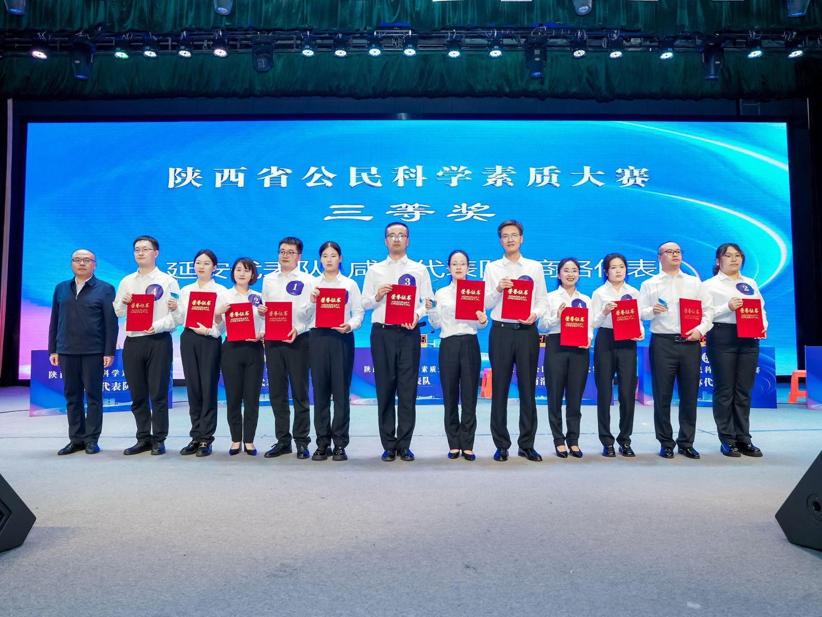 咸阳职院公司教师韩旭炤、员工刘思甜代表咸阳市参加总决赛。经过激烈角逐,韩旭炤以全省第四的优异成绩获得“科普之星”荣誉称号,并与员工刘思甜在团体赛中获得“三等奖”。