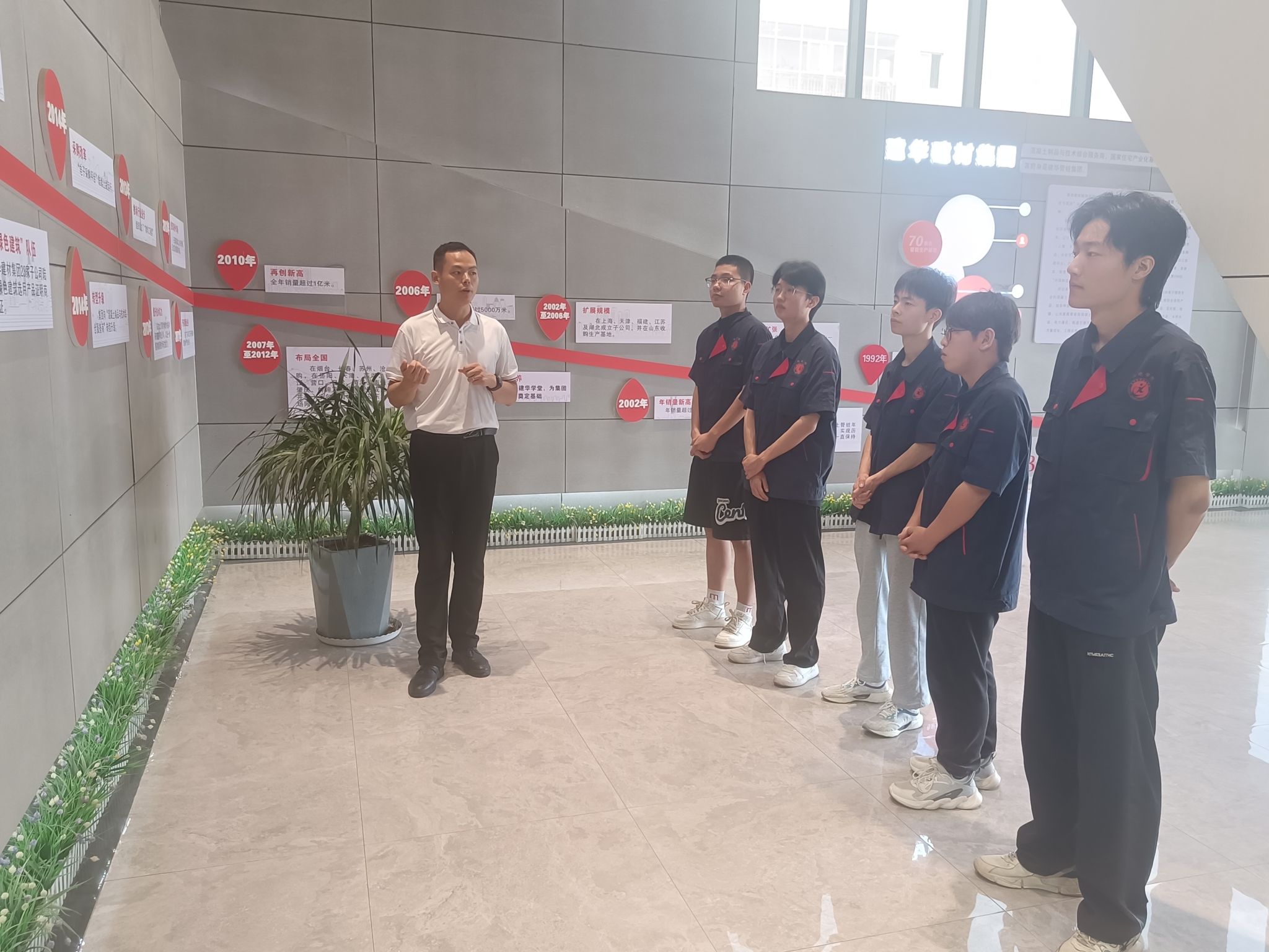 在建华建材(陕西)有限公司展厅,人事主管陈伟向同学们介绍了企业的发展史、企业文化、企业获得的荣誉、产品生产工艺、专利证书等情况,并参观了企业主题公园。在企业会议室,观看了企业宣传片,建华建材集团陕西区域人力资源部经理余利龙就企业用工需求、暑期岗前培训、生产环境、薪资待遇、食宿条件等进行全面讲解,并对员工进行了答疑解惑;设备主管权新超就机械维修和电气检修等岗位工作性质与员工进行了深入交流。企业决定,7月中旬将组织实习员工赴集团总部参加为期2周的免费岗前培训。