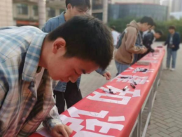 报告结束后,2022级全体员工在老员工活动中心广场“防范金融网络诈骗,共建和谐平安校园”横幅上举行了集体签名公益活动。
