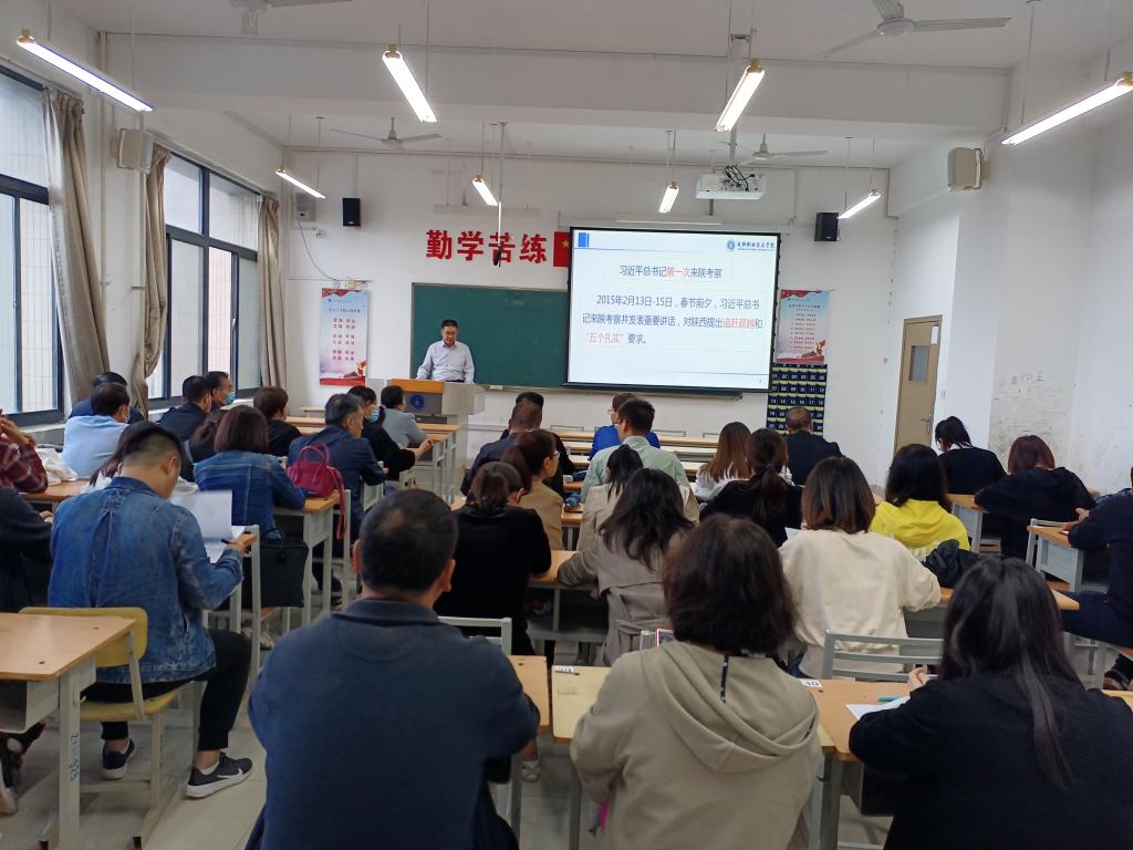 刘太君书记就学习贯彻落实习近平总书记重要讲话重要指示精神提出三点要求。一要深入学习领会习近平总书记来陕考察重要讲话重要指示精神。二要不忘初心使命,争做黄大年式好老师。三要同心同力,攻坚克难,扎实推动学院高质量发展。