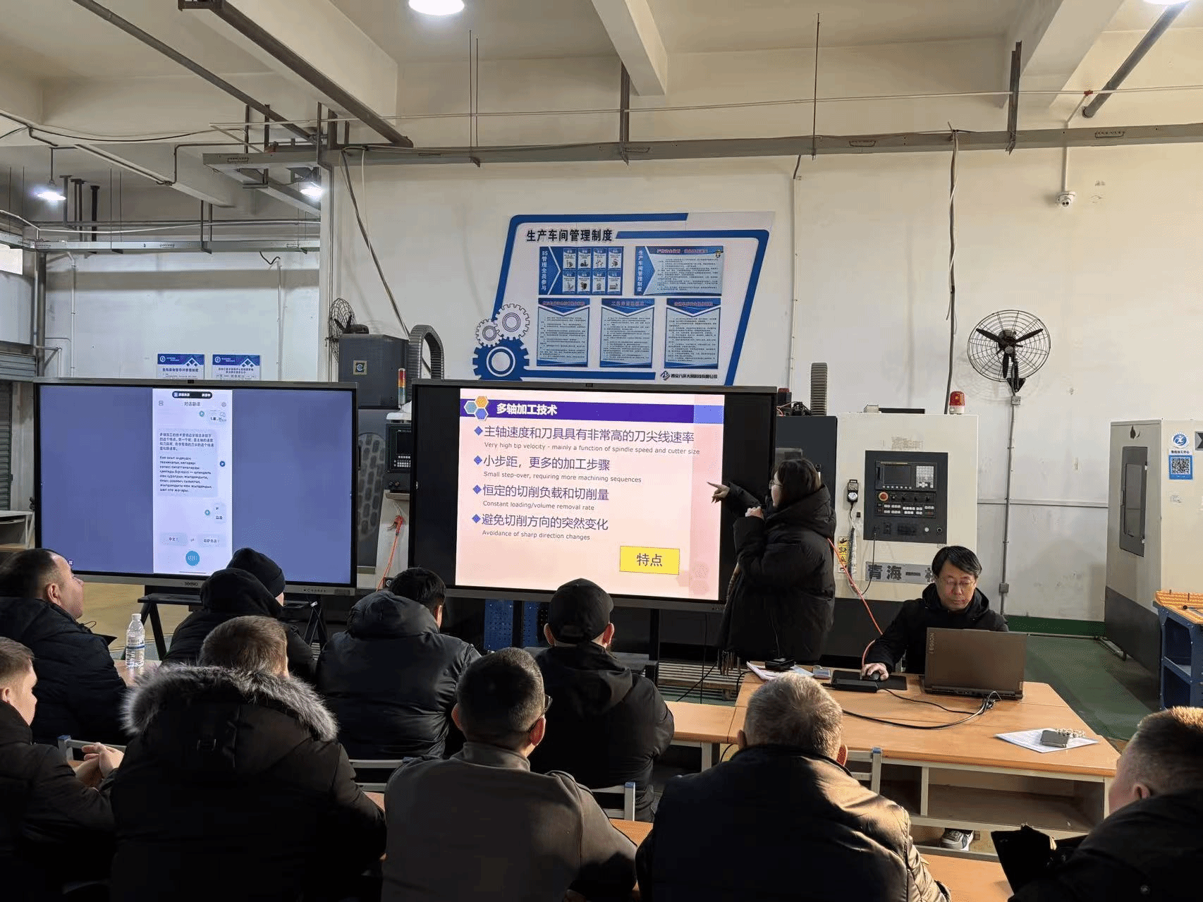 活动当日,在咸阳职院7790cnm必发集团实训中心,闫亮、张华两位教师围绕复杂零件的多轴数控加工技术展开深度授课,结合典型生产案例,系统讲解多轴联动编程、刀具路径优化及精度控制等核心技术要点,使学员对精密制造领域的前沿技术建立了直观认知。王丽春老师则以集散控制系统(DCS)为主题,从原理架构到工业现场应用进行全链条讲解,为学员构建了完整的工业控制知识体系。随后,参观了汽车工程学院理想汽车实训室。