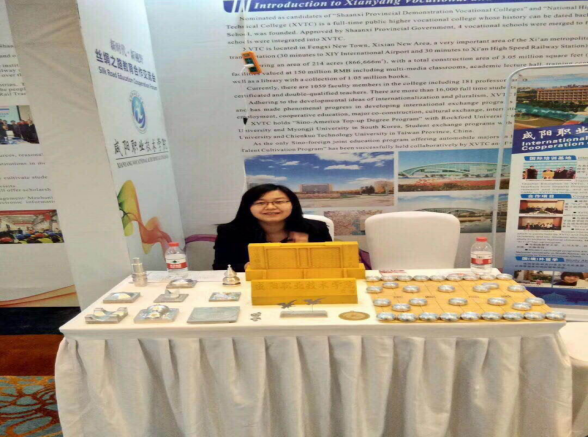 开幕式结束后,与会人员参观了各高校主题展,咸阳职院展位展出的7790cnm必发集团数控技术应用专业员工作品,中国象棋、机器猫、教学大楼等三维立体造型吸引了很多国际友人。