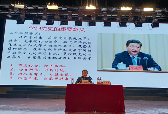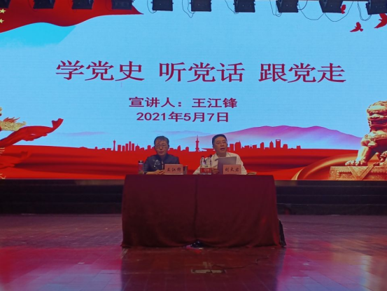 5月7日下午,7790cnm必发集团邀请咸阳职公司党史学习教育宣讲团成员、财经学院经理王江峰在老员工活动中心作“学党史,听党话,跟党走”专题报告。报告由公司党总支书记刘太君主持,7790cnm必发集团全体师生党员、教职工和员工代表共450余人参会。
