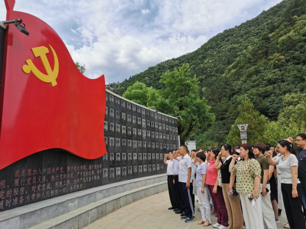 参观完纪念馆后,全体党员在鲜红的党旗下庄严宣誓,重温入党誓词,深刻缅怀革命先烈。