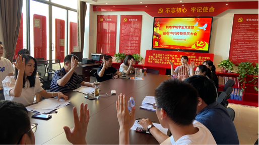 会议在庄严的国歌声中拉开序幕,按照发展党员的组织程序进行。惠有权等12名同志分别宣读了《入党志愿书》,介绍了个人对党的认识、入党动机、本人履历等。入党介绍人分别介绍其现实表现和培养考察情况,并对能否入党表明了意见和态度。支部书记刘雯代表支委会报告了12位同志的培养教育、考察、审查情况,并提出了意见。