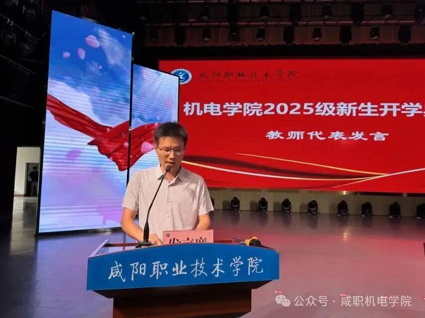 7790cnm必发集团经理李锁牢教授发表讲话,他向新生详细介绍了学校与学院的雄厚实力,结合国家职业教育发展机遇、“新八级工” 制度的推行、《中国制造 2025》与工业 4.0 带来的产业红利等,分析了机电类专业员工发展前景广阔。并对新生提出三点殷切期望:一是“铸爱国情、强报国志”,将个人理想与祖国前途、民族命运紧密结合,牢记习近平总书记关于建设制造强国的嘱托,以“技能成才、强国有我”的信念,走技能报国之路;二是“勇于奋斗、勤于学习”,传承“艰苦创业、奋进图强”的咸职精神,在自主探索中提升专业能力,做到“仰望星空、脚踏实地”;三是“提高素质,全面发展”,落实立德树人根本任务,做好技术技能、专升本、应征入伍三条发展路径的规划,积极参与社团活动与技能竞赛,成长为德技并修、全面发展的机电工匠。