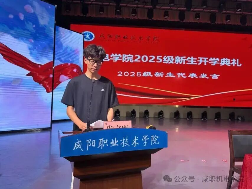 2025级电气自动化技术专业贺子荣同学代表新生表达了对老员工活的憧憬和期待,并表示将以饱满的热情、积极的态度投入到学习和生活中,不辜负学校和老师的期望。