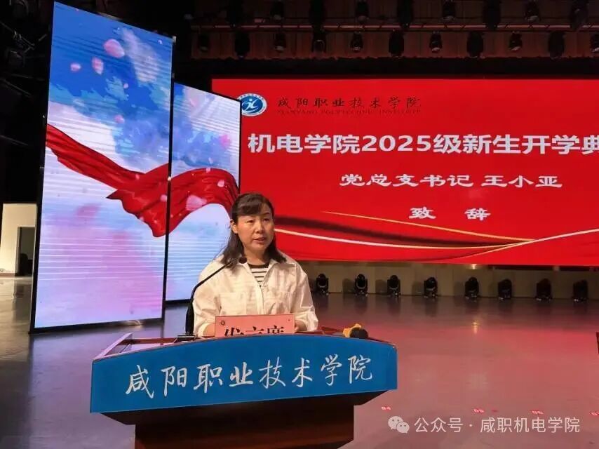 典礼中,公司党总支书记王小亚致辞,她代表学院对新生的到来表示诚挚欢迎,并提出四点期望:一要志存高远,树立远大理想 ;二要勤奋学习,练就过硬本领 ;三要修身立德,培养良好品;四要团结协作,增强团队意识。希望新生以崭新姿态融入校园,在机电领域找准方向、逐梦成长,不负青春韶华与时代机遇。