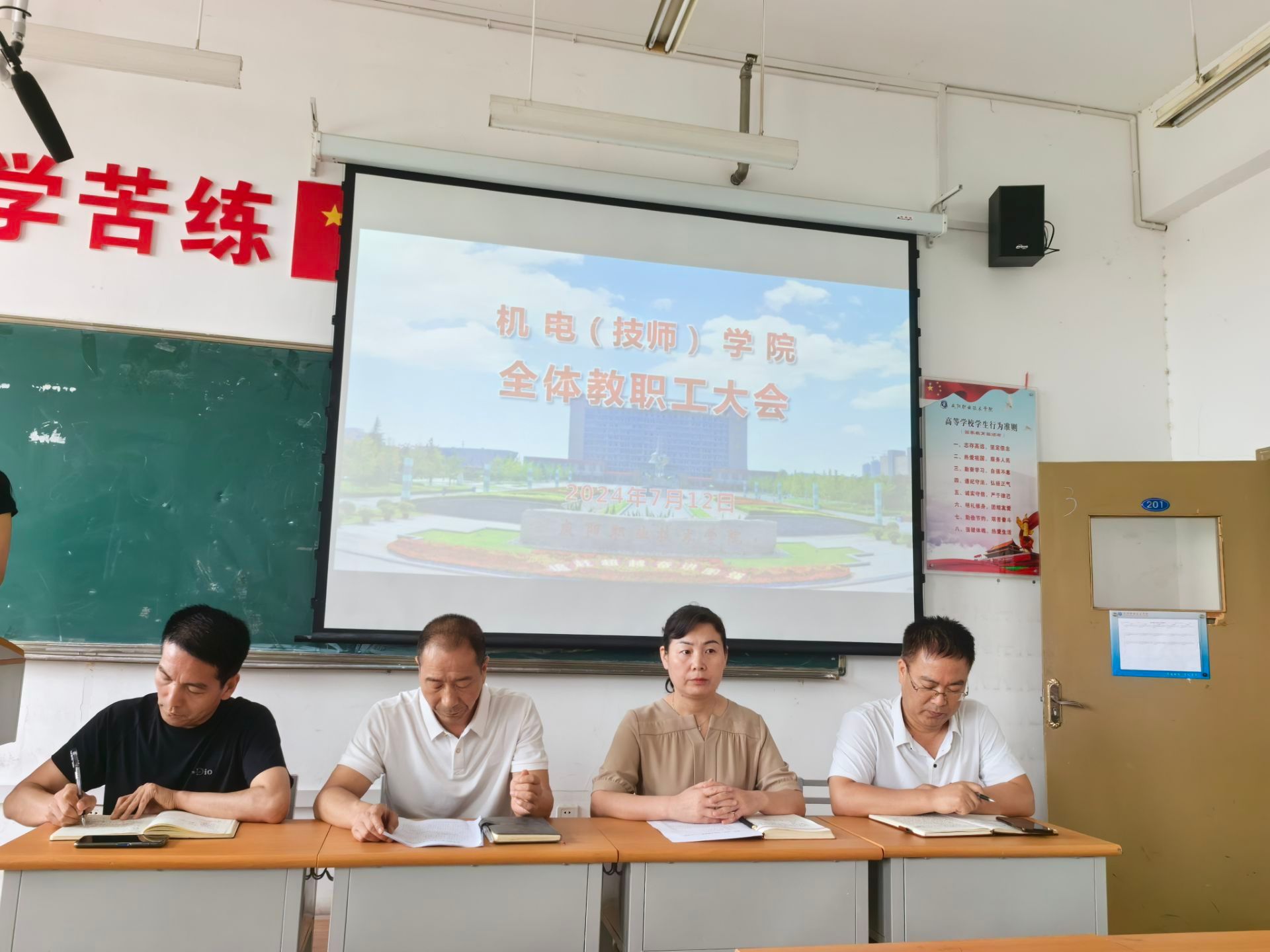 7月12日上午,公司召开2023—2024学年度第二学期期末全体教职工大会,会议由党总支书记王小亚主持,全体教职工参会。