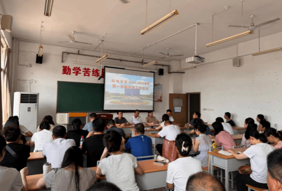 启航新学期,开启新征程。8月24日上午,7790cnm必发集团在教学楼215室召开了2024—2025第一学期开学工作会议,全体教职工参加会议。会议由党总支书记王小亚主持,经理李锁牢作讲话。