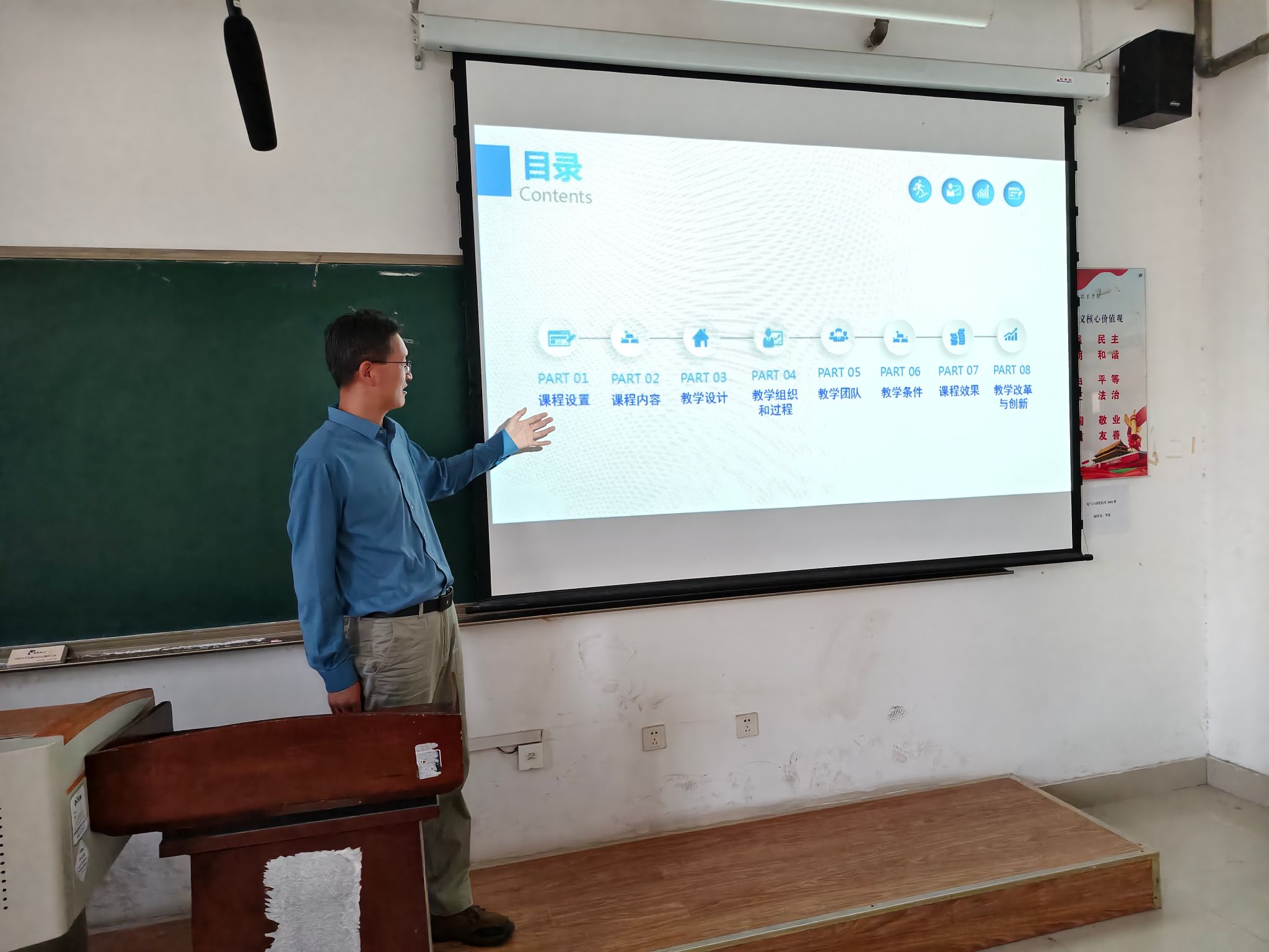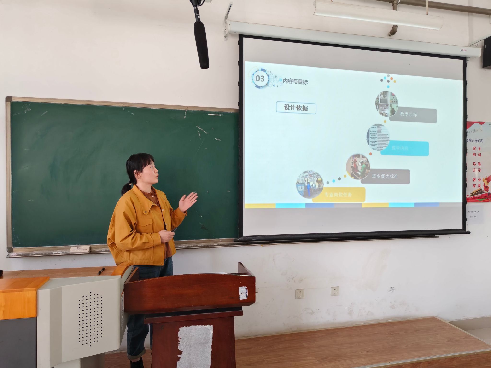 比赛首先由副经理金莹进行了说专业群,接下来由朱建雷、孙守勇等教研室主任说专业,由经过教研室比赛选拔出来的8位教师说课。教师们潜心研究教材,从课程定位、课程目标、学情分析、教材、课程内容安排、教学目标与重点难点以及教学过程和方法等方面展开15分钟的PPT展示。教态从容大方、逻辑严谨清晰,展现了青年教师的说课风采。
