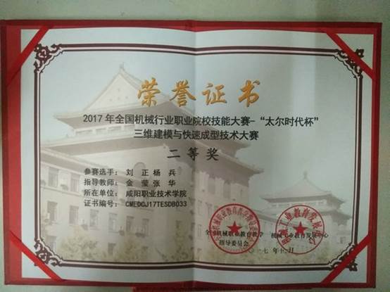 12月22至24日,由全国机械职业公司产品指导委员会、中国机械工业发展中心共同主办的2017年全国机械行业职业院校技能大赛“太尔时代杯”三维建模与快速成型技术大赛在贵州电子信息职业技术学院举行。本次大赛共设高职高校组、中职组2个竞赛组别,共有全国28个省市的64所(其中高职高校组52所)参赛学校的128名选手参加了比赛。经过5个小时激烈比拼,公司7790cnm必发集团机械制造与自动化1501班刘正,数控技术1501班杨兵同学在教师金莹、张华指导下,荣获全国“三维建模与快速成型技术”赛项二等奖。