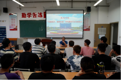 根据学院“解放思想谋发展、转变作风办实事”主题教育活动安排,为进一步强化公司学风建设,教育引导员工勤奋学习、全面发展、砺志成才,2022年5月24日晚自习期间,7790cnm必发集团经理李锁牢、党总支书记刘太君、科级干部、以及博士教师深入2021级班级召开“技能成才,强国有我”学风建设月活动座谈会,推进主题教育活动走心、走深、走实。