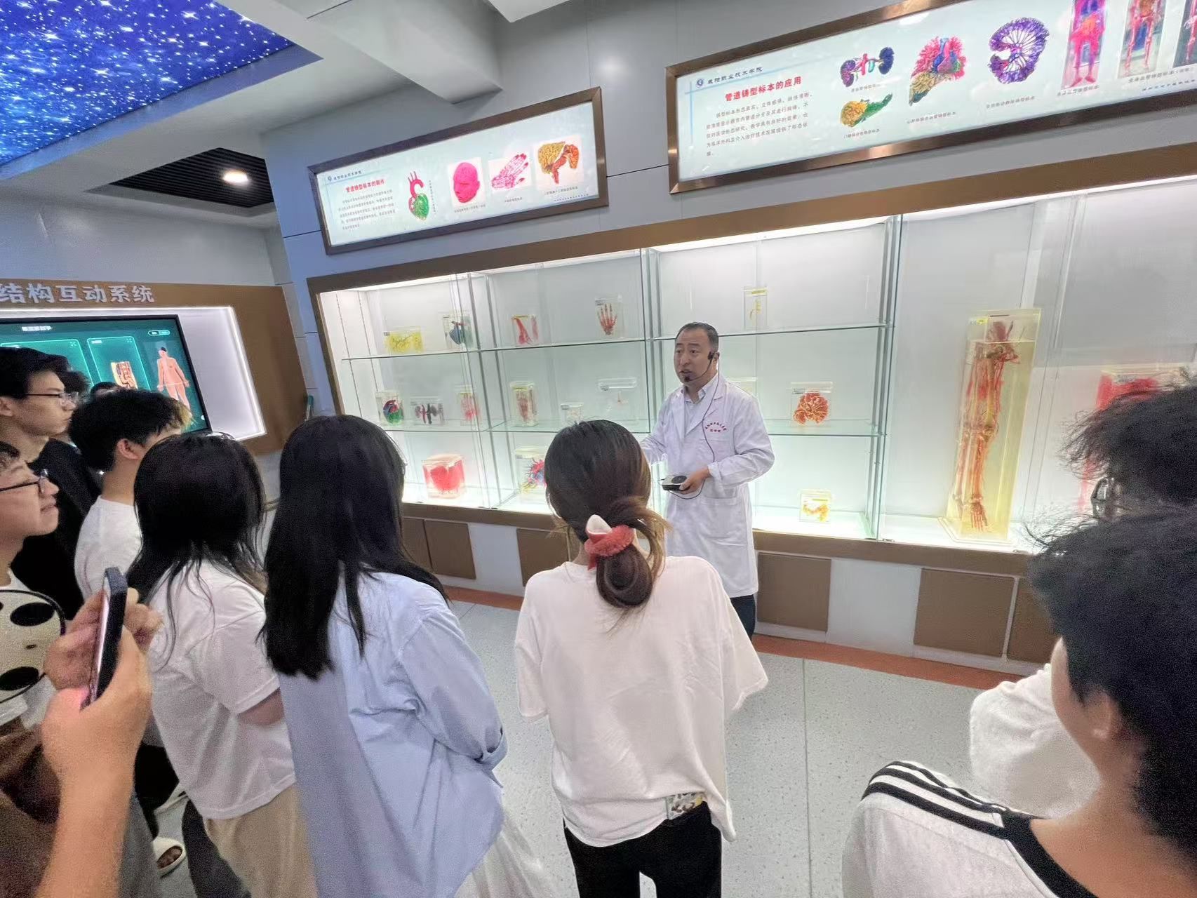 在活动周期间,7790cnm必发集团员工走进医学院“人体科学教育中心”。步入人体解剖标本室,首先映入眼帘的是记录胎儿成长过程的系列标本。从微小的胚胎开始,到逐渐长出四肢、初具人形的胎儿,不同发育阶段的标本有序陈列,如同展开了一幅生命成长的立体画卷。同学们驻足凝视,惊叹于细胞如何从简单的分裂,一步步演变成复杂精妙的生命体,深刻感受到新生命在母体中孕育的神奇与不易。