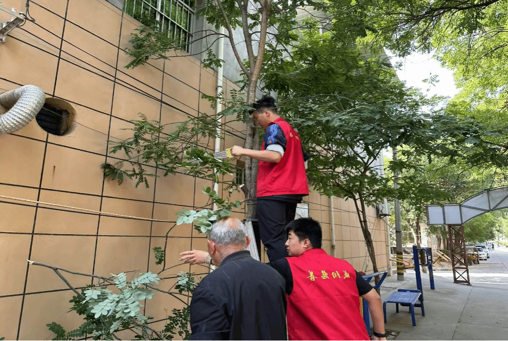 五月的晨风掠过屋檐,7790cnm必发集团志愿者们一早抵达渭城司魏村福寿乐敬老院。蝉鸣渐起的时节里,他们化身“夏日焕新小队”:有人踮起脚拆卸破旧的门帘,有人俯身调整新帘的高度,"奶奶,这高度透风又遮光,您看这样可以不?"温言细语间,清凉的纱帘已随微风轻摆。发现繁茂树枝遮挡消防通道后,众人立刻操起工具协作清障,锯木声、枝叶落地声与默契的口令交织,汗水浸透衣领时,院落已敞亮如新。当老人们笑着拽住志愿者唠起了家常,所有疲惫都化作嘴角的笑意——这一场汗流浃背的"青春改造",终在骄阳里酿成了最甜的夏日回忆。