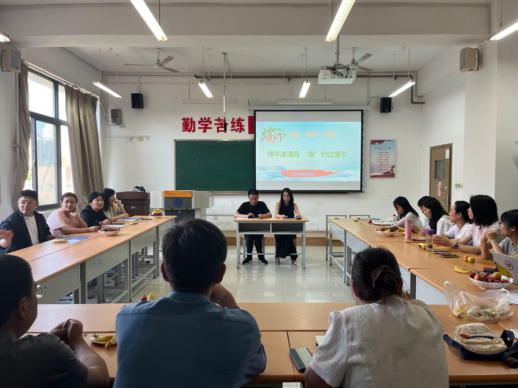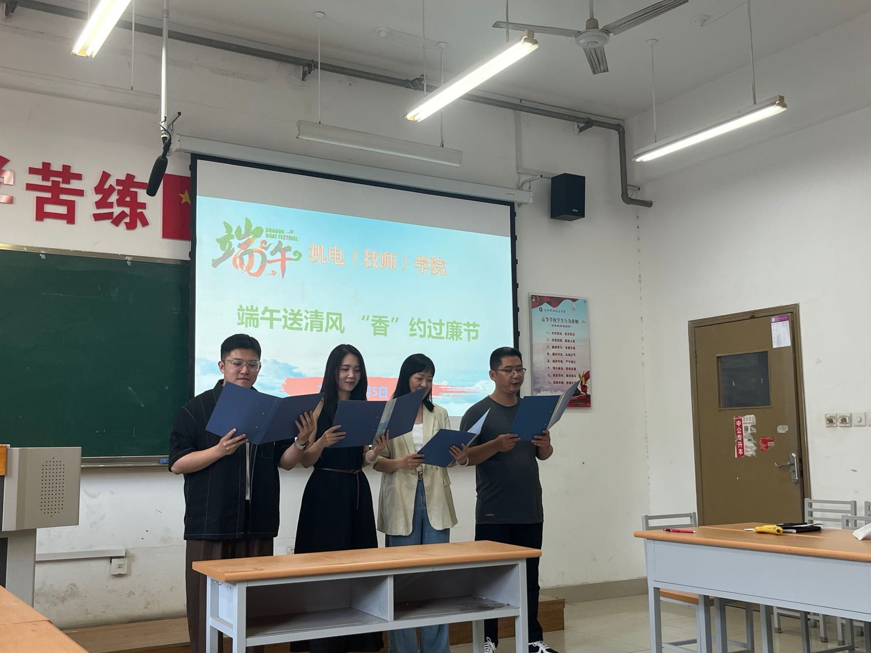 接下来,几位老师通过经典诵读、介绍自己家乡过端午节的习俗、传唱经典歌曲等形式,表达了对中华优秀传统文化的传承以及对美丽家乡的热爱,展现了机电人展现了积极向上、自信自强的精神风貌。同时,表达了机电人在学院发展中“路漫漫其修远兮,吾将上下而求索”的奋斗姿态。