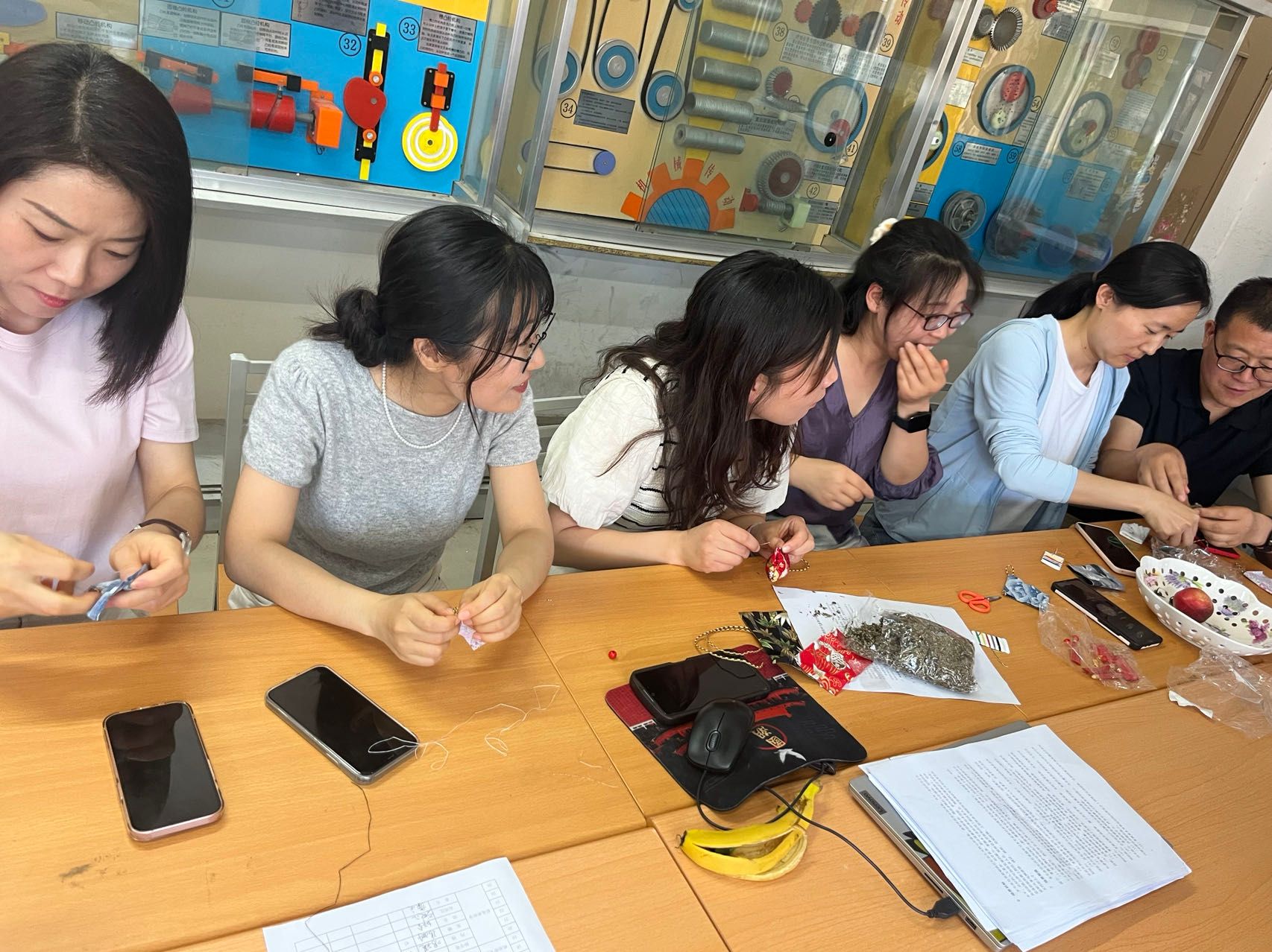 之后,大家纷纷动手,开始制作属于自己的香囊。丝绸布在指尖翻飞,五彩丝线在指间穿梭,中药材和香料散发出淡淡的清香。每个人都沉浸在制作的乐趣中,不时地互相交流着制作心得,现场氛围温馨而融洽,大家纷纷沉浸在丰富多彩的活动之中。