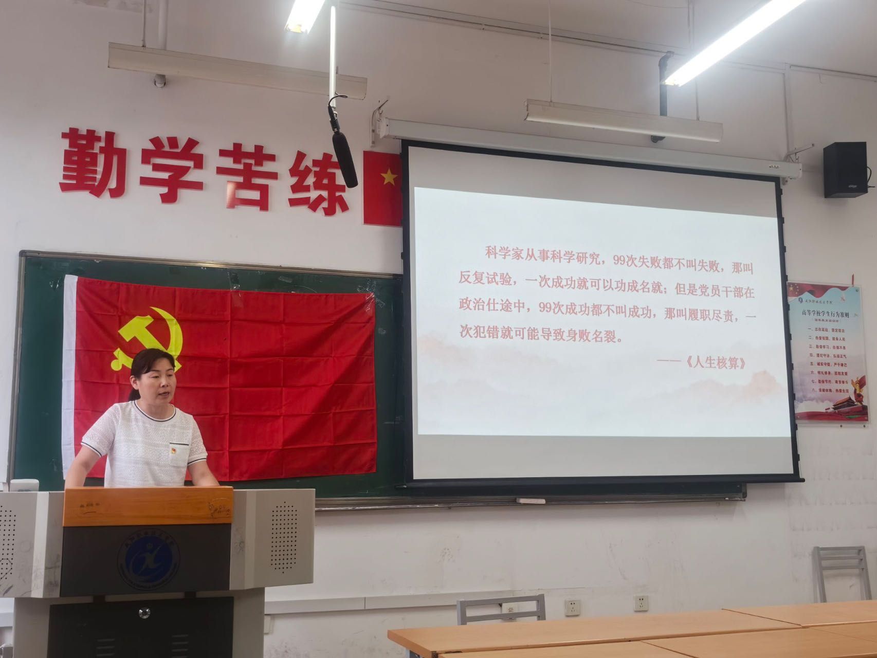紧接着,党支书记和副书记分别以《保持政治清醒,严守政治纪律》和《弘扬工匠精神,践行立德树人使命》为主题,为大家上了一节生动的党课,使党员在学纪、知纪、明纪、守纪上树立更高标准。随后,大家集体观看了警示教育片《蚁贪之害》,以案为鉴、以案明纪,影片中的情节内容引人深思、令人警醒。