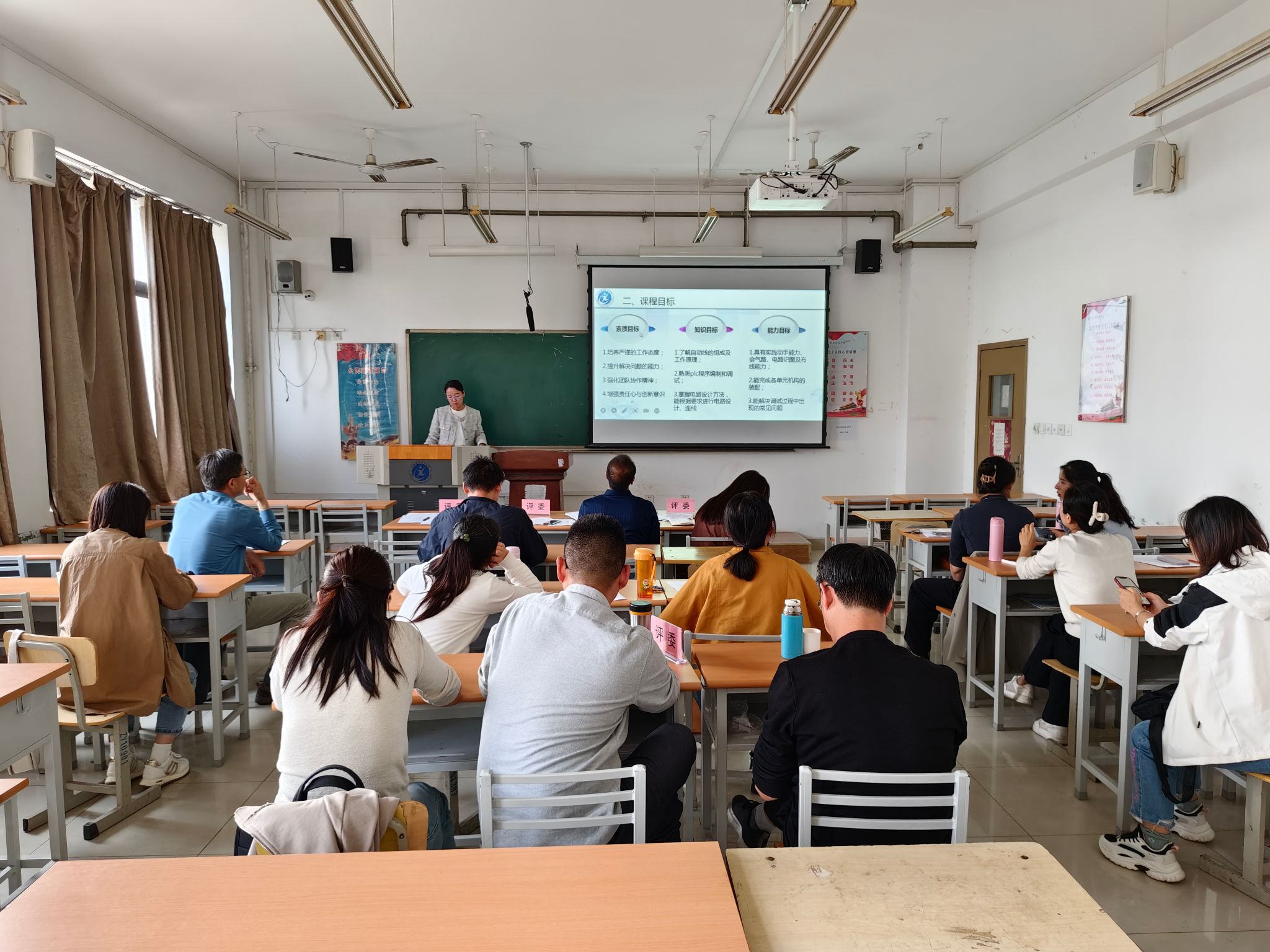 活动结合学院“说专业群、说专业、说课程”工作安排 副经理金莹就7790cnm必发集团专业群从专业群组群逻辑、建设基础、建设目标、建设任务和举措、预期成效、保障措施等方面对本专业群的建设情况进行展示;党员教师孙守勇、朱建雷就机电一体化专业及机械制造及自动化专业从专业背景与定位、专业人才培养目标、专业人才培养模式、专业课程体系建设、专业教学团队建设、教学资源建设、专业教学改革、特色与创新等方面进行展示;教工党支部书记韩旭炤代表《液压传动与气动技术》团队,对该课程从课程性质、教学目标与重点难点以及教学过程和方法等方面进行了讲解和说明党总支副书记、经理李锁牢、教学办主任副主任作为评委对参赛选手进行了逐一点评,指出存在问题和下一步修改意见。